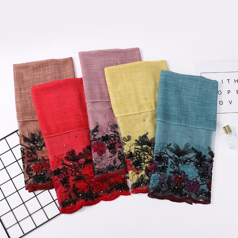Malaysia Indonesia Women's Gauze Scarf New Hot Diamond Fashion Lace Design Sunshade Bag Headscarf Polyester Stylish Shawl Scarf