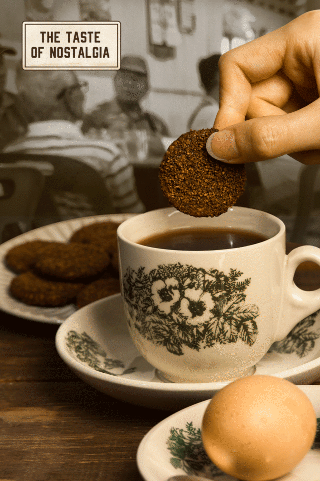คุกกี้กาแฟทรงกลมวินเทจนานยางมาเลเซีย