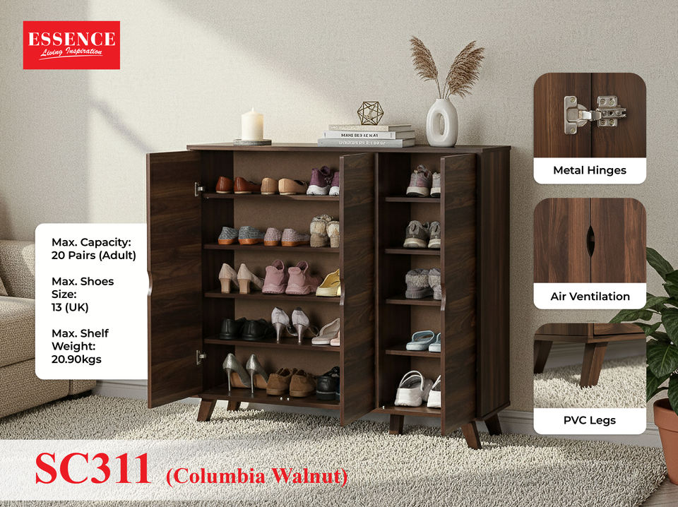 ตู้เก็บรองเท้า 5 ชั้น รุ่น SC311 แบบโมเดิร์น ผลิตในมาเลเซีย แบบถอดประกอบได้ สไตล์ร่วมสมัย ไม้โคลัมเบียวอลนัท สำหรับห้องนั่งเล่น