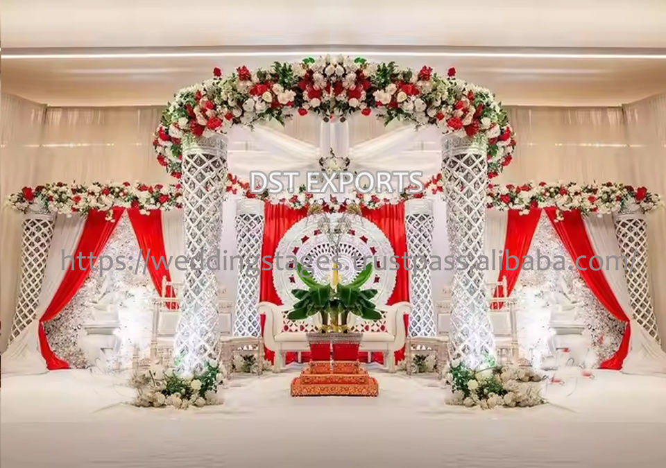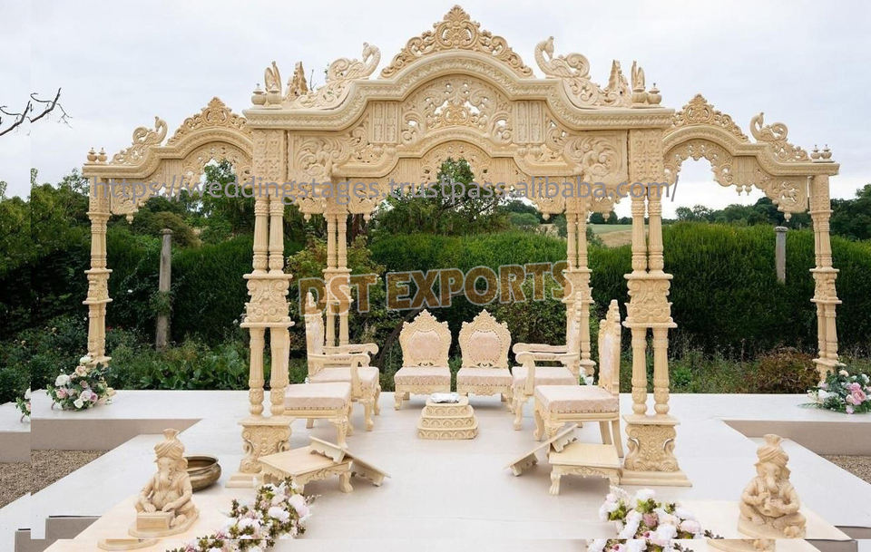 ตกแต่งงานแต่งงานแบบอินเดียของชาวมาเลเซีย DST Exports เสาประดับรูปงวงช้างสีขาวขายดี ผู้ผลิตมานดาปสำหรับงานสำคัญในสหราชอาณาจักร