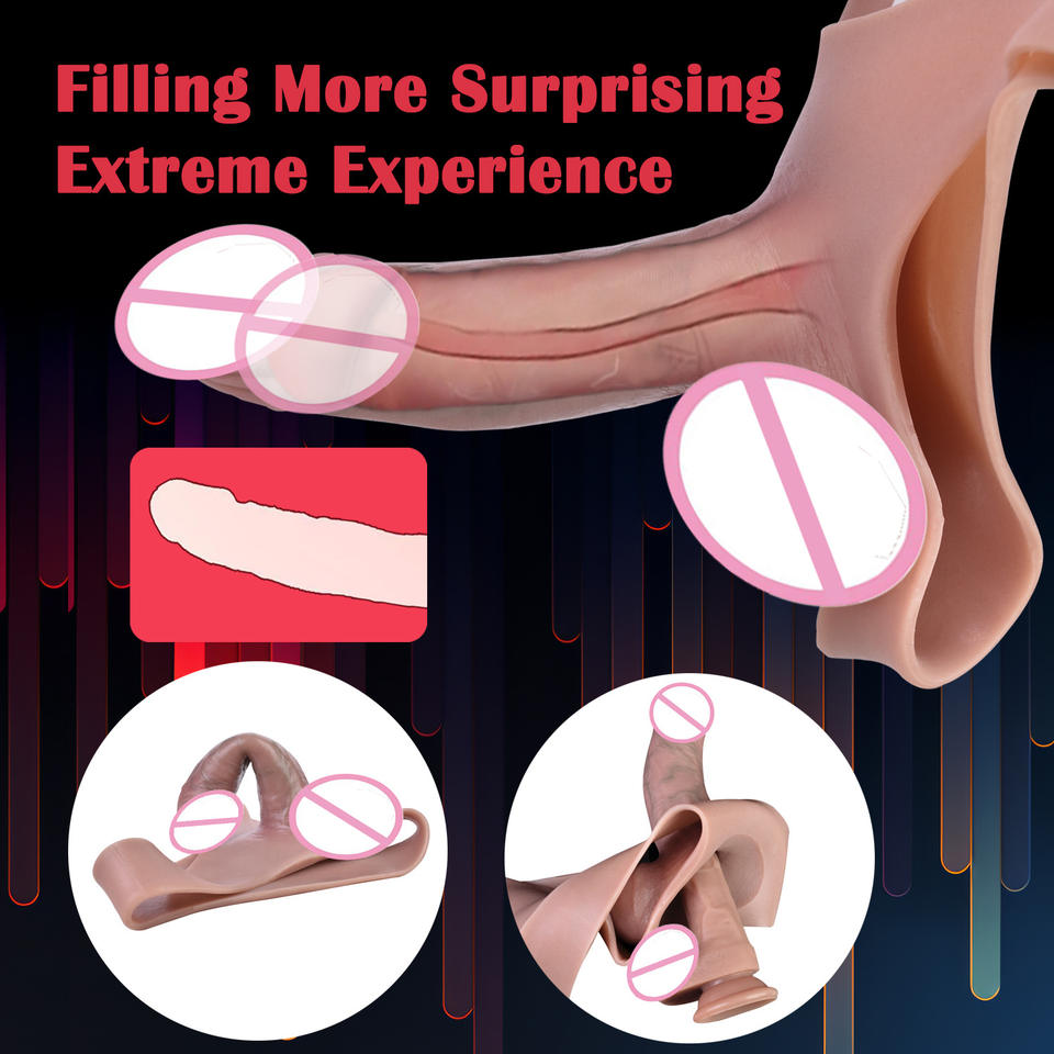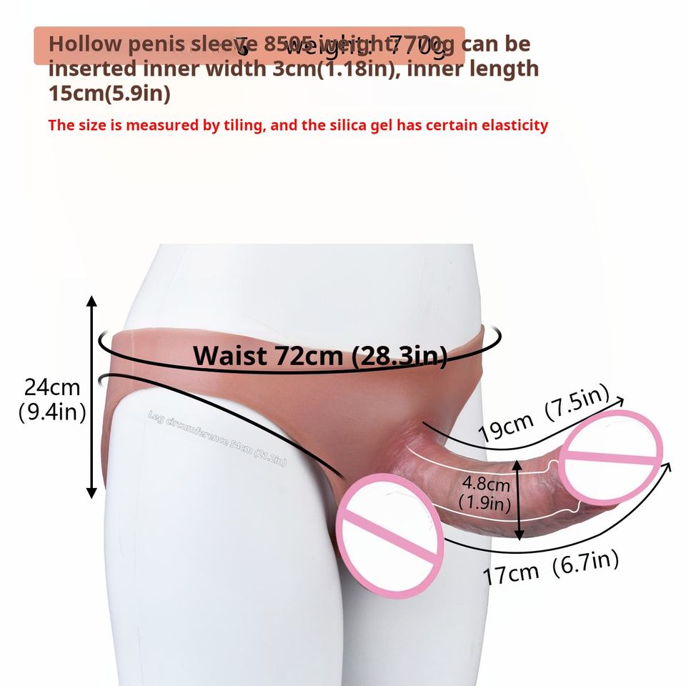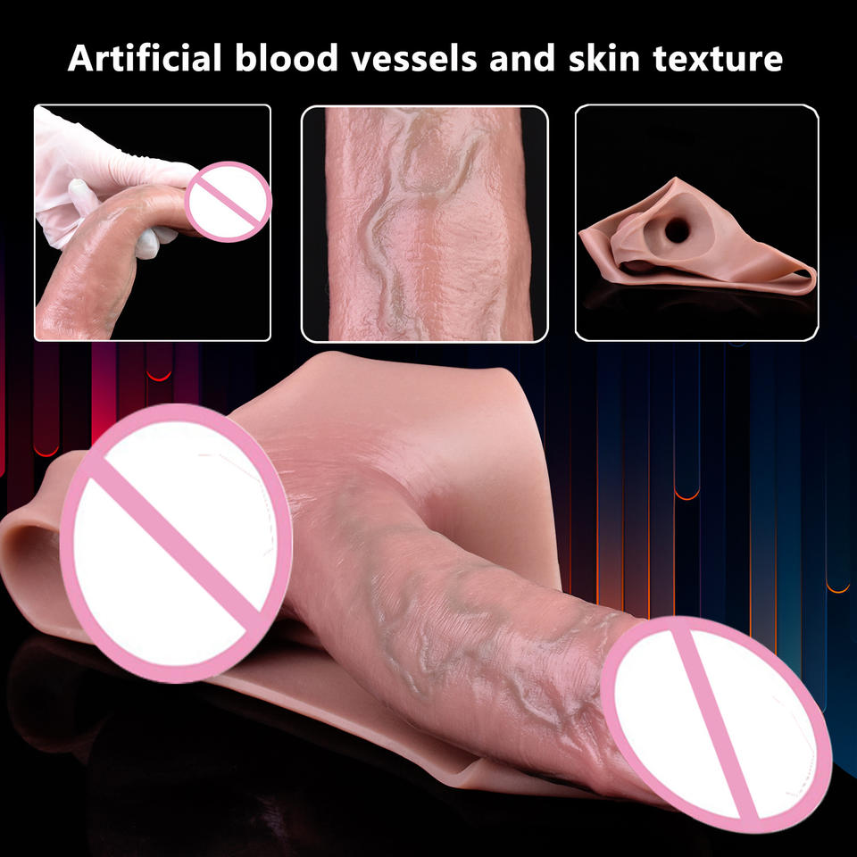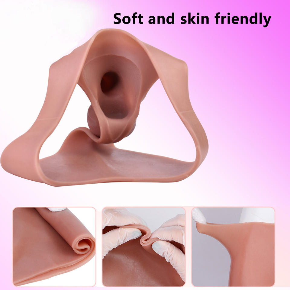 อุปกรณ์เพศชายที่มีฝาครอบอวัยวะเพศชายขยายและหนาขึ้นสวมใส่จำลองของกางเกงอวัยวะเพศชายกลวงผลิตภัณฑ์ทางเพศสำหรับผู้ใหญ่