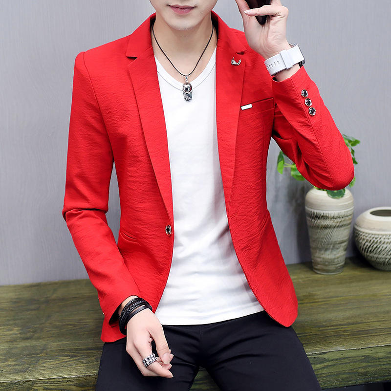 เสื้อเบลเซอร์ผู้ชายทรงเข้ารูป สไตล์เกาหลี แบรนด์ดัง ดีไซน์เท่ห์ สำหรับฤดูใบไม้ผลิและฤดูร้อน สีพื้น เรียบง่าย สบายๆ