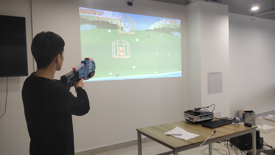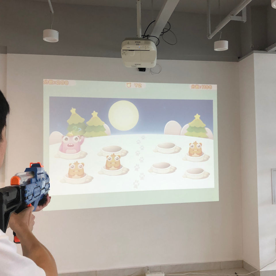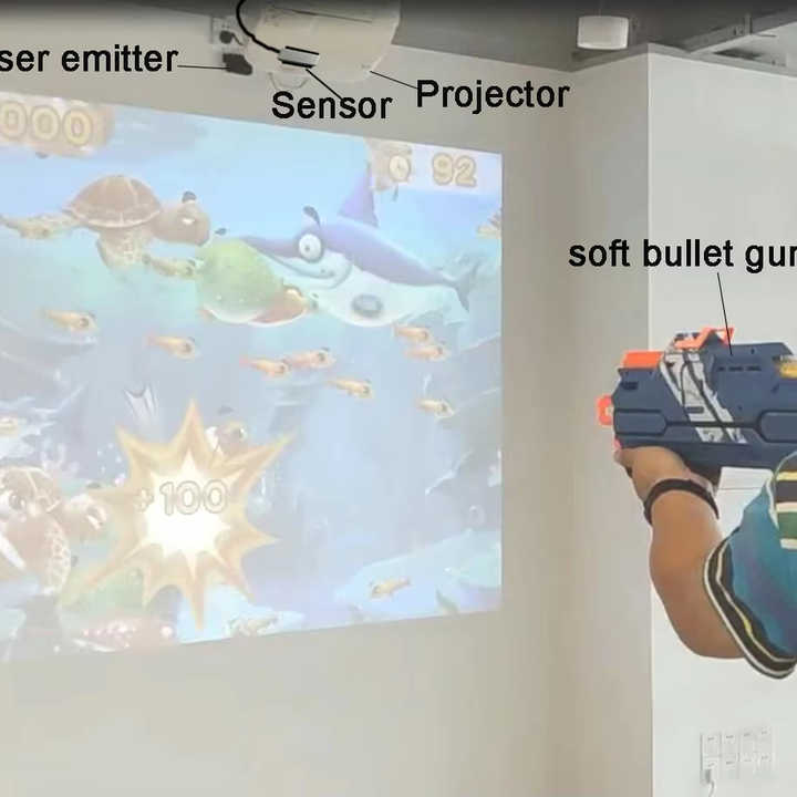 ห้างสรรพสินค้า3D ฉายภาพหน้าจอขนาดใหญ่เกมแบบโต้ตอบเสมือนจริงของเล่นปืนยิงเกมติดผนัง