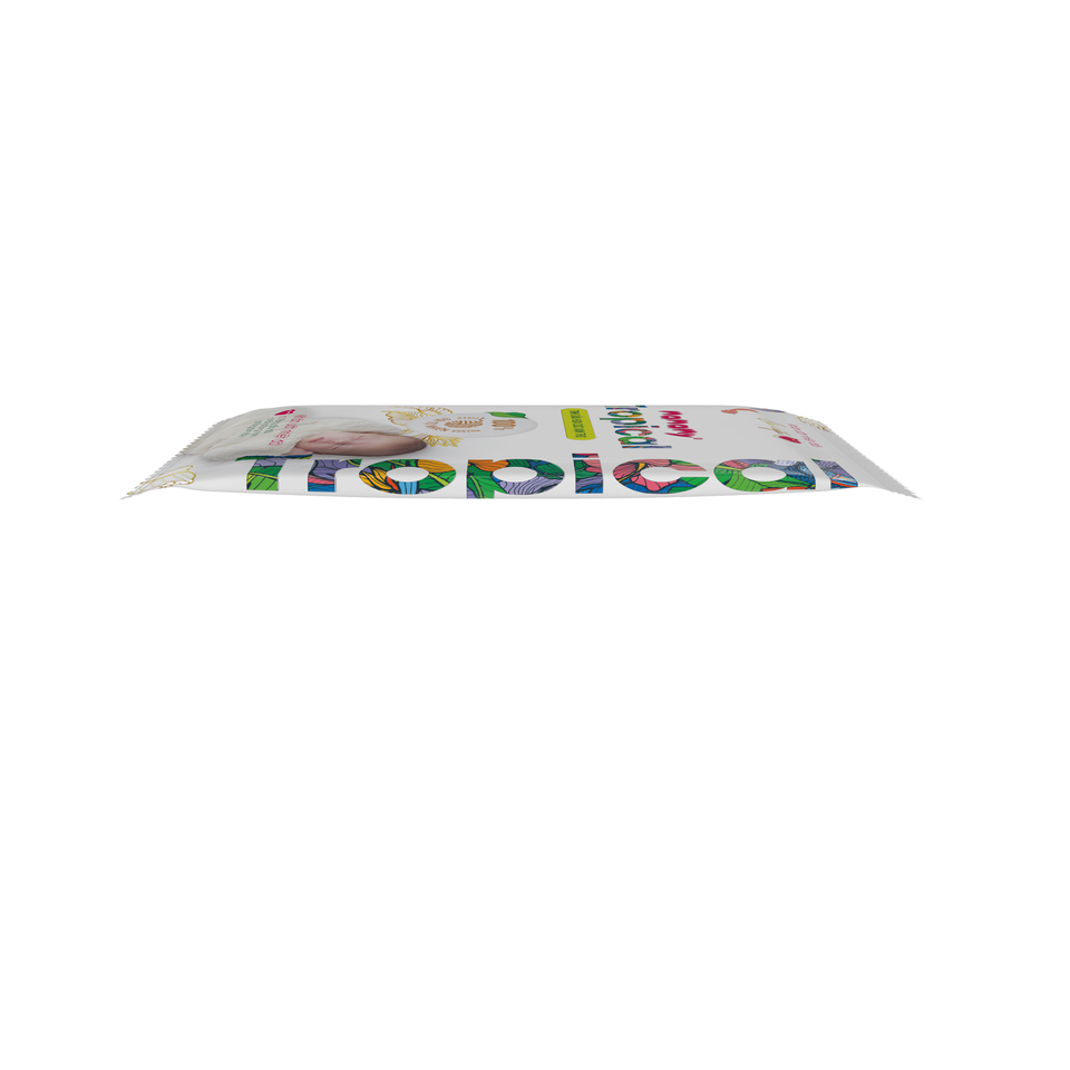 ผ้าเช็ดทำความสะอาดแบบเปียกของ Mamamy ทรอปิคอลที่มีผิวนูนมะพร้าว phosphatidyl PG-dimonium Chloride สำหรับดูแลผิวทารกแพ็คที่ไม่ทอ10ถุง