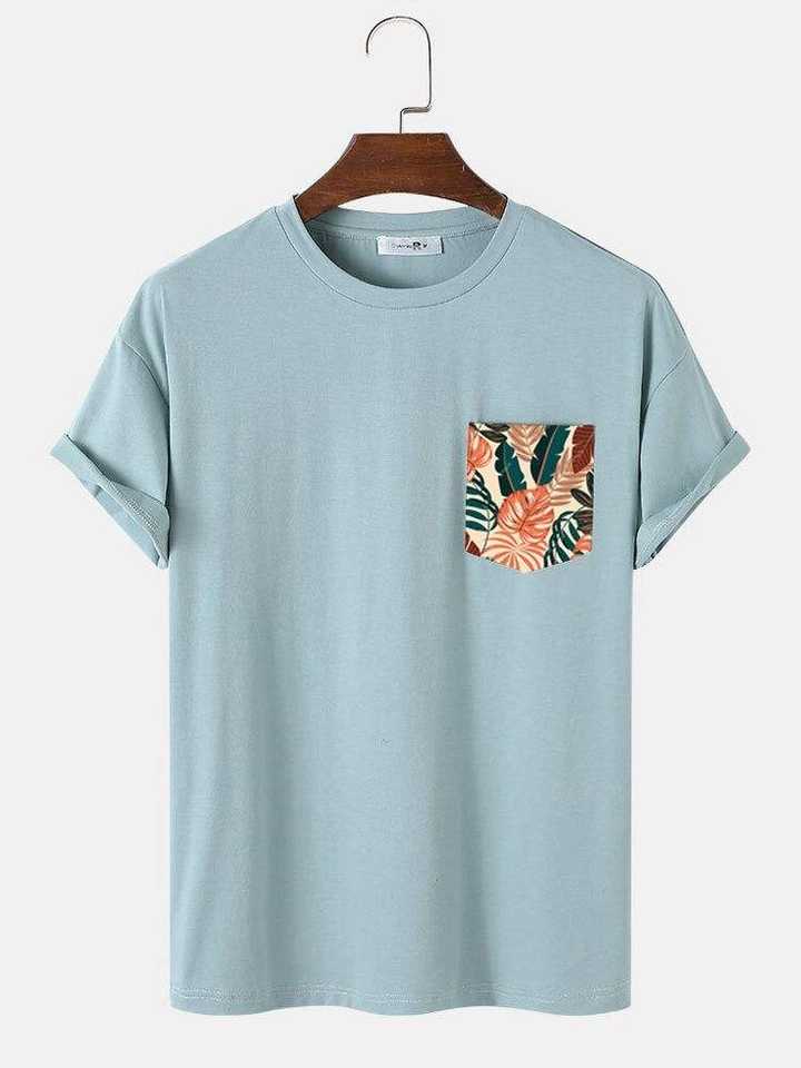 เสื้อยืดผู้ชาย 100% ผ้าฝ้าย ราคาถูก มีกระเป๋าหน้า แบบเรียบง่าย คอกลม