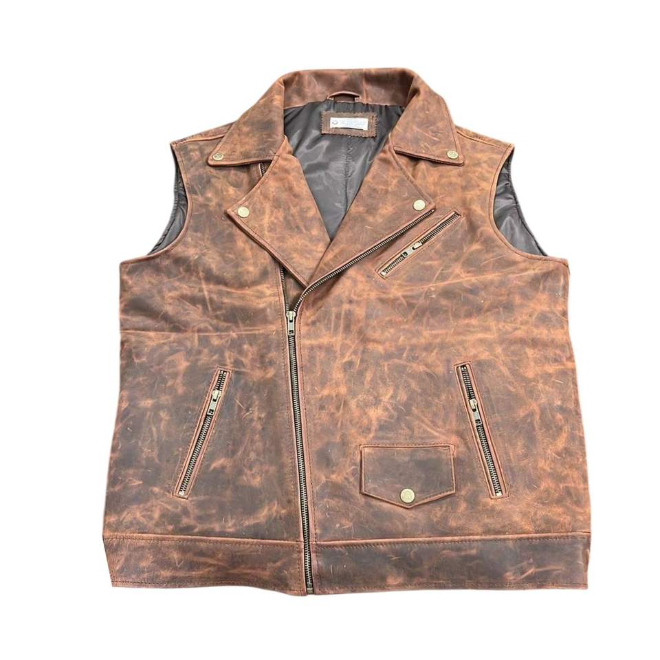 เสื้อแจ็คเก็ตนักขี่มอเตอร์ไซค์หนังสีน้ำตาลสำหรับผู้ชาย