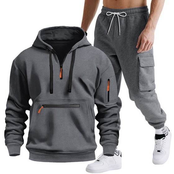 เสื้อยืดลำลองแบบคู่กับคาร์โก้ของผู้ชายเสื้อยืดมีฮู้ดชุดวอร์มสเวตเชิ้ตสำหรับผู้ชาย