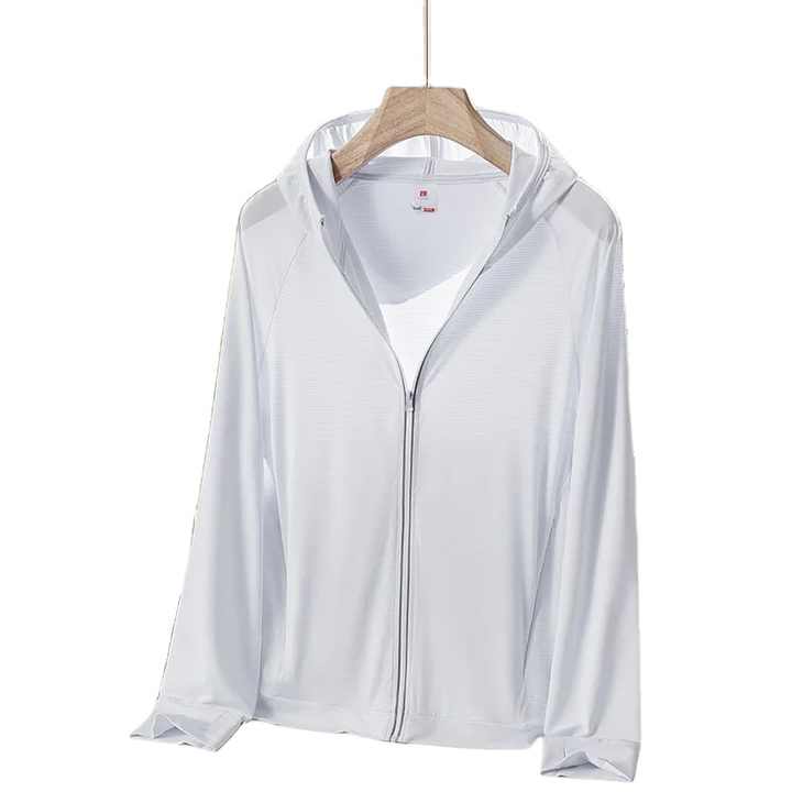 เสื้อผ้าผู้ชายไซส์สูงผ้ามีฮู้ดปกป้องแสงแดดจากผ้าไหมน้ำแข็ง50 + เสื้อผ้ากันแสงแดดสำหรับปั่นจักรยานวิ่งกลางแจ้ง
