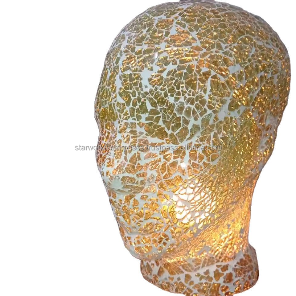 โคมไฟตั้งโต๊ะโมเสคหน้า Man Skull โคมไฟตั้งโต๊ะโมเสคคุณภาพเยี่ยม โคมไฟตั้งโต๊ะโบราณ ผลิตในอินเดีย