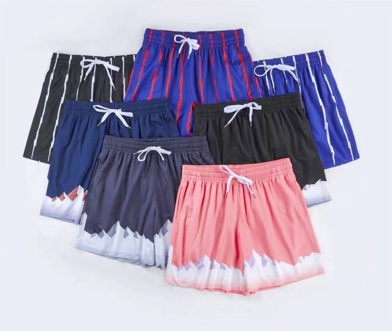 กางเกงขาสั้นผ้าโพลีเอสเตอร์แห้งเร็วสำหรับผู้ชายกางเกงขาสั้นพิมพ์ลายบาสเก็ตบอลกางเกงขาสั้นลำลองมีสไตล์โลโก้ตามสั่ง