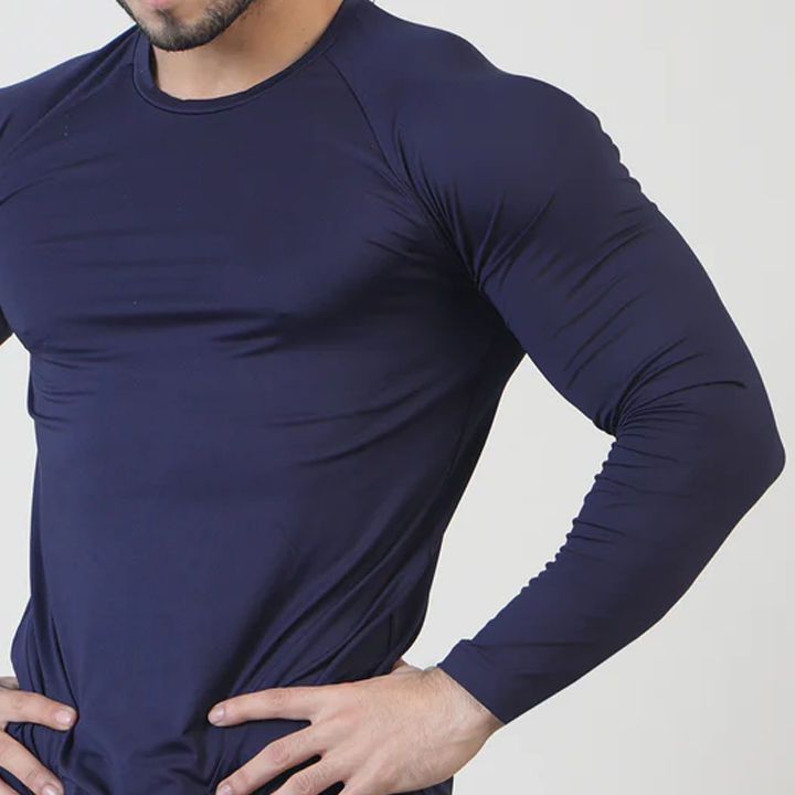 เสื้อรัดกล้ามเนื้อแขนยาวผ้าสแปนเด็กซ์/โพลีเอสเตอร์คอกลมเสื้อออกกำลังกายแบบเป็นทางการแห้งเท่ออกแบบโลโก้ได้ตามต้องการ