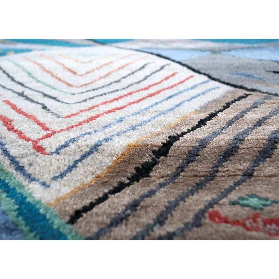 พรมไหมพรมผสมไหมไผ่สีน้ำตาลเบจ แมนชาฮ่า ลายเรขาคณิต รูปทรงสี่เหลี่ยมผืนผ้า สำหรับห้องนั่งเล่น วัยรุ่น และทางเดิน รุ่น Les-1479