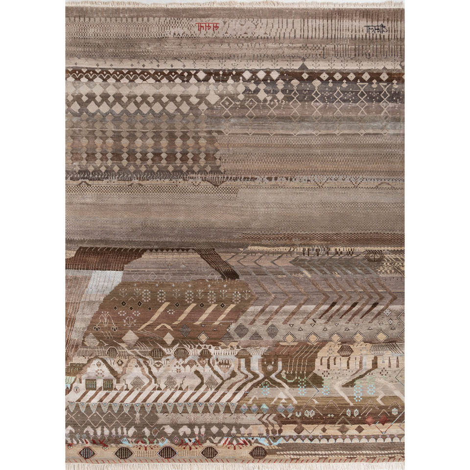 พรมไหมพรมผสมไหมไผ่สีน้ำตาลเบจ แมนชาฮ่า ลายเรขาคณิต รูปทรงสี่เหลี่ยมผืนผ้า สำหรับห้องนั่งเล่น วัยรุ่น และทางเดิน รุ่น Les-2279