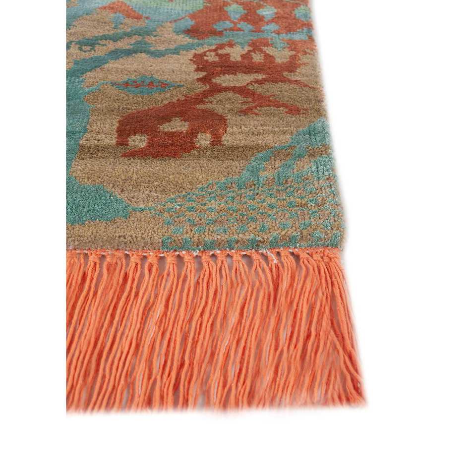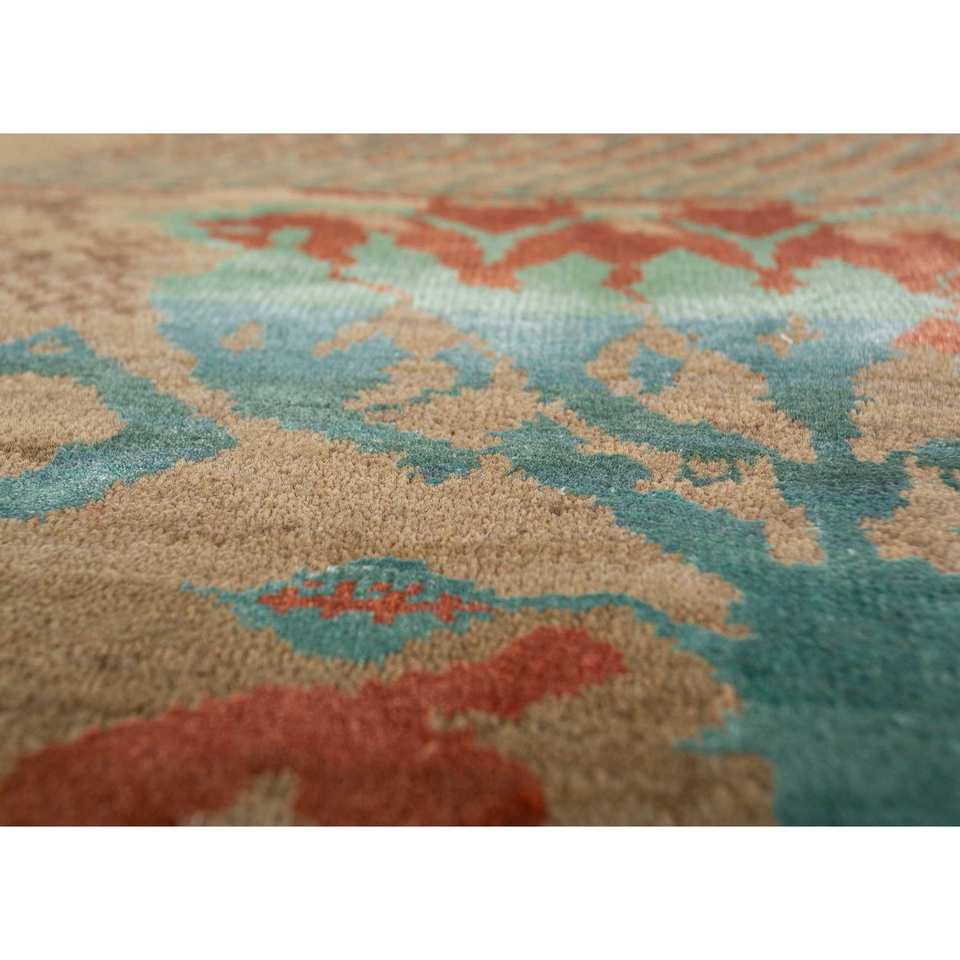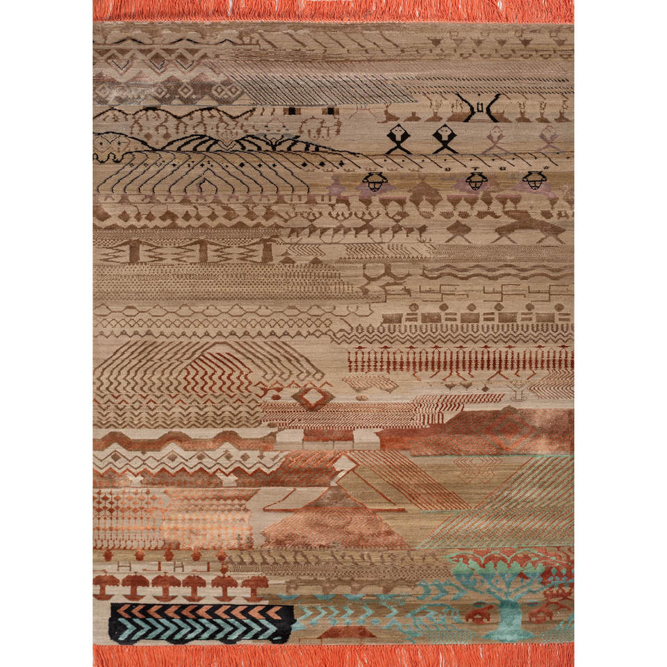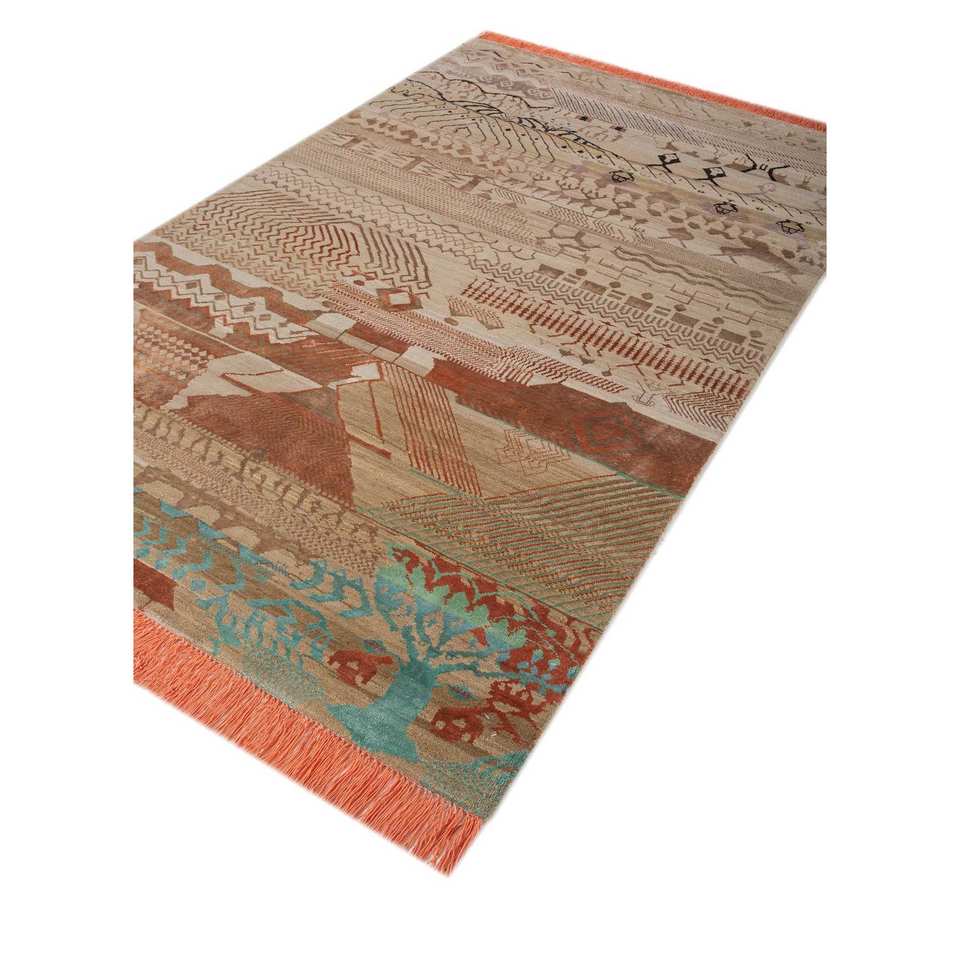 พรมไหมพรมผสมไหมไผ่ถักมือสีเบจและสีน้ำตาลลายเรขาคณิตทรงสี่เหลี่ยมผืนผ้าสำหรับห้องนั่งเล่น รุ่น Manchaha-Les-2335