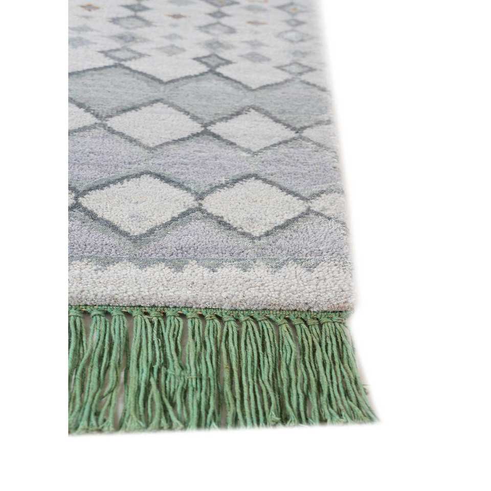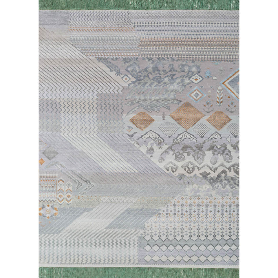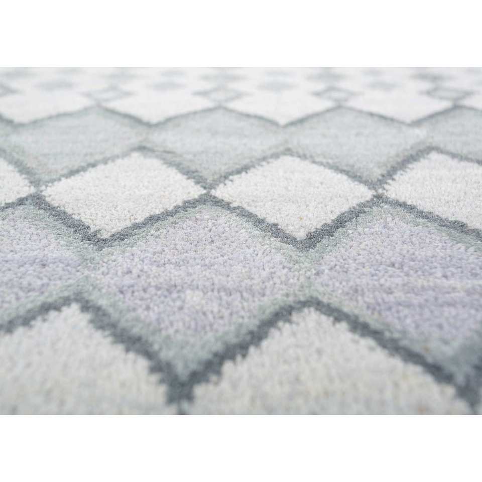 พรมไหมไผ่ผสมขนสัตว์ถักมือสีน้ำเงินแมนชาฮ่า หนา 10 มม. ลายเรขาคณิตนามธรรม รูปทรงสี่เหลี่ยมผืนผ้า สำหรับห้องโถงในบ้าน รุ่น Les-1758