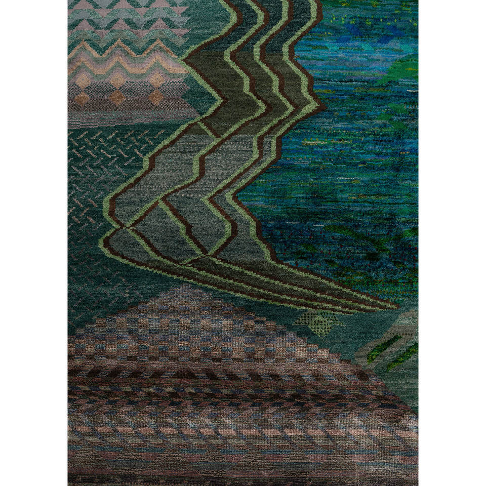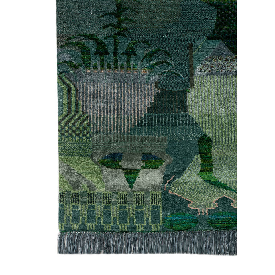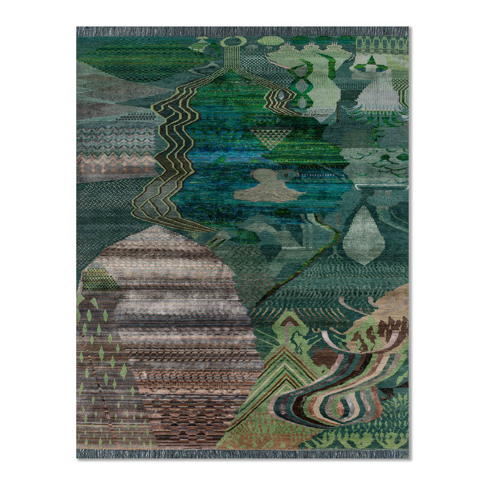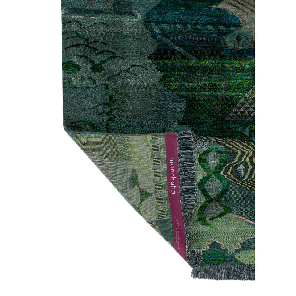 พรมขนสัตว์และไหมถักมือลายกราฟิกสีเขียวขนาดใหญ่ รุ่นแมนชาฮา สำหรับตกแต่งห้องนั่งเล่นหรือทางเดิน สำหรับวัยรุ่น-Les-2758