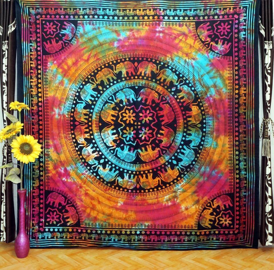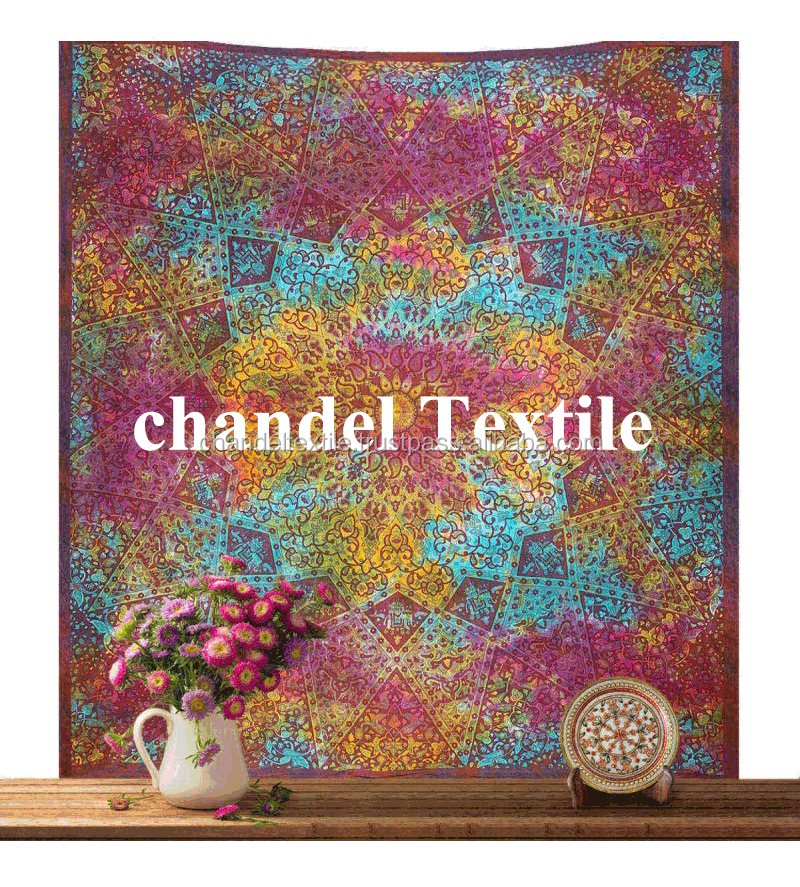 Mandala Lovers พรมแขวนผนังสไตล์โบฮีเมียน, ผ้าฝ้ายพิมพ์ลายดาวลายดอกไม้แนวพื้นเมืองหลากสีสำหรับตกแต่งบ้าน