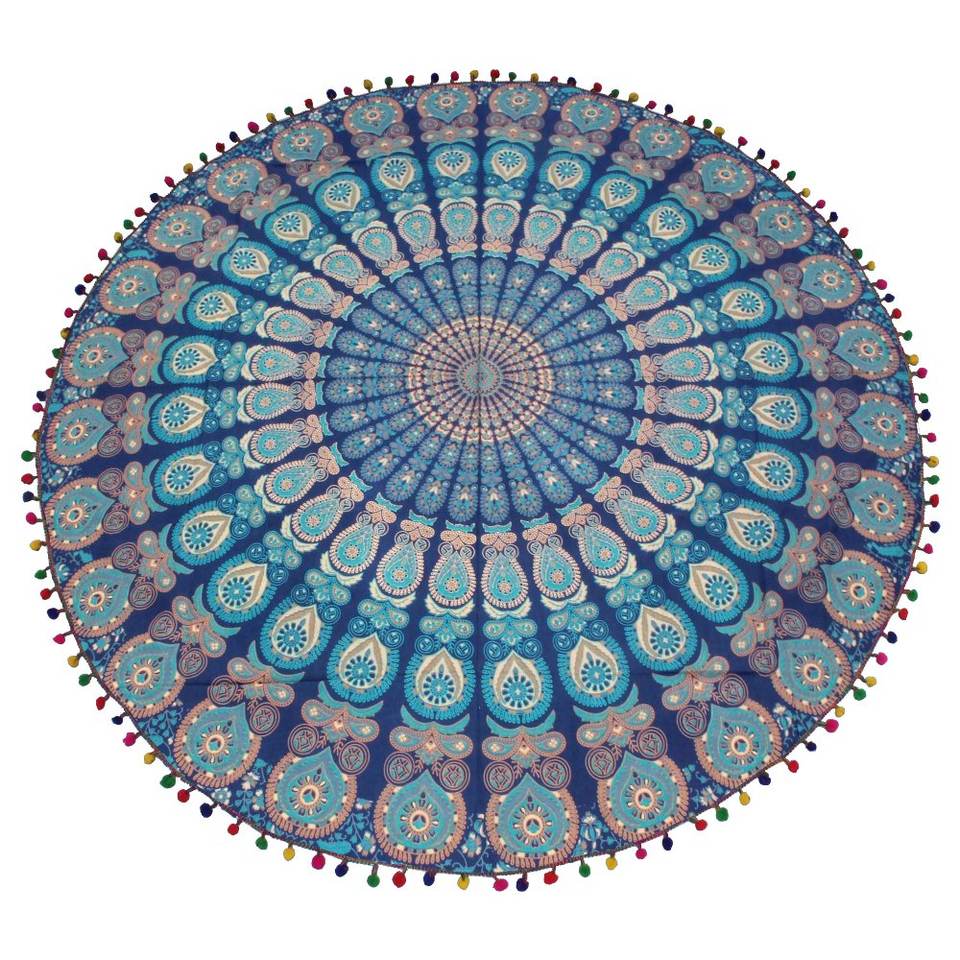 พรมชายหาดทรงกลมลายแมนดาลาแบบแมนดาลาสไตล์ฮิปปี้โบฮีเมียนผ้าห่มชายหาดแบบกลมผ้าปูโต๊ะสำหรับบ้าน