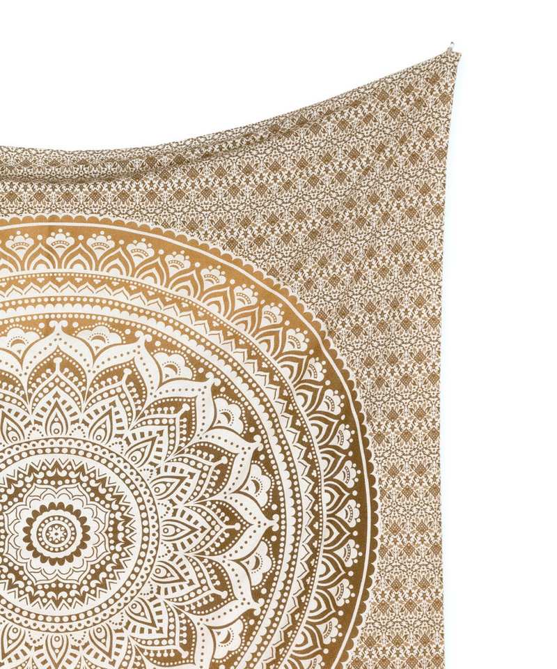 เสื่อชายหาดลายแมนดาลาไล่เฉดสีแบบออมเบร ดีไซน์อินเดียดั้งเดิม ลายดอกไม้ ผ้าเรยอน/ผ้าฝ้ายทอ ใช้ได้ทุกฤดู สำหรับกลางแจ้ง สีน้ำตาลออเชอร์ สำหรับใช้ในบ้าน