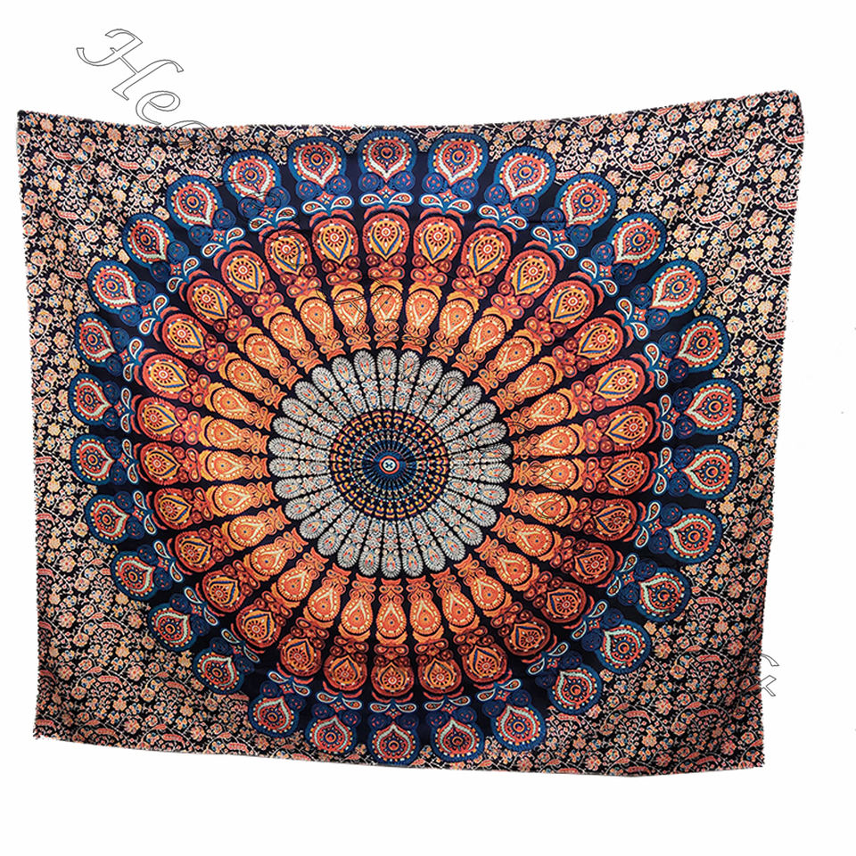 พรมแขวนผนังผ้าฝ้ายฮิปปี้พิมพ์ลายดิจิตอล,ผ้าคอตตอนแมนดาลาโบฮีเมียนแบบกำหนดเองอินเดียสำหรับห้องนอน
