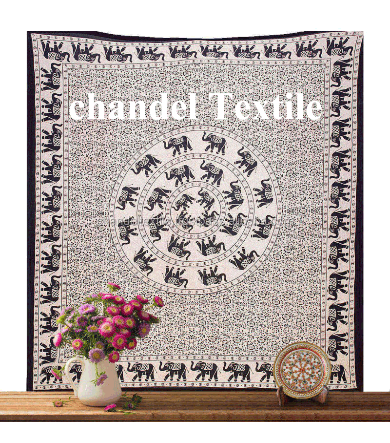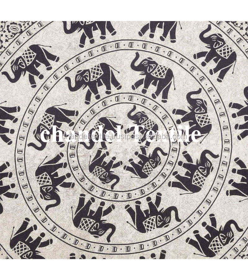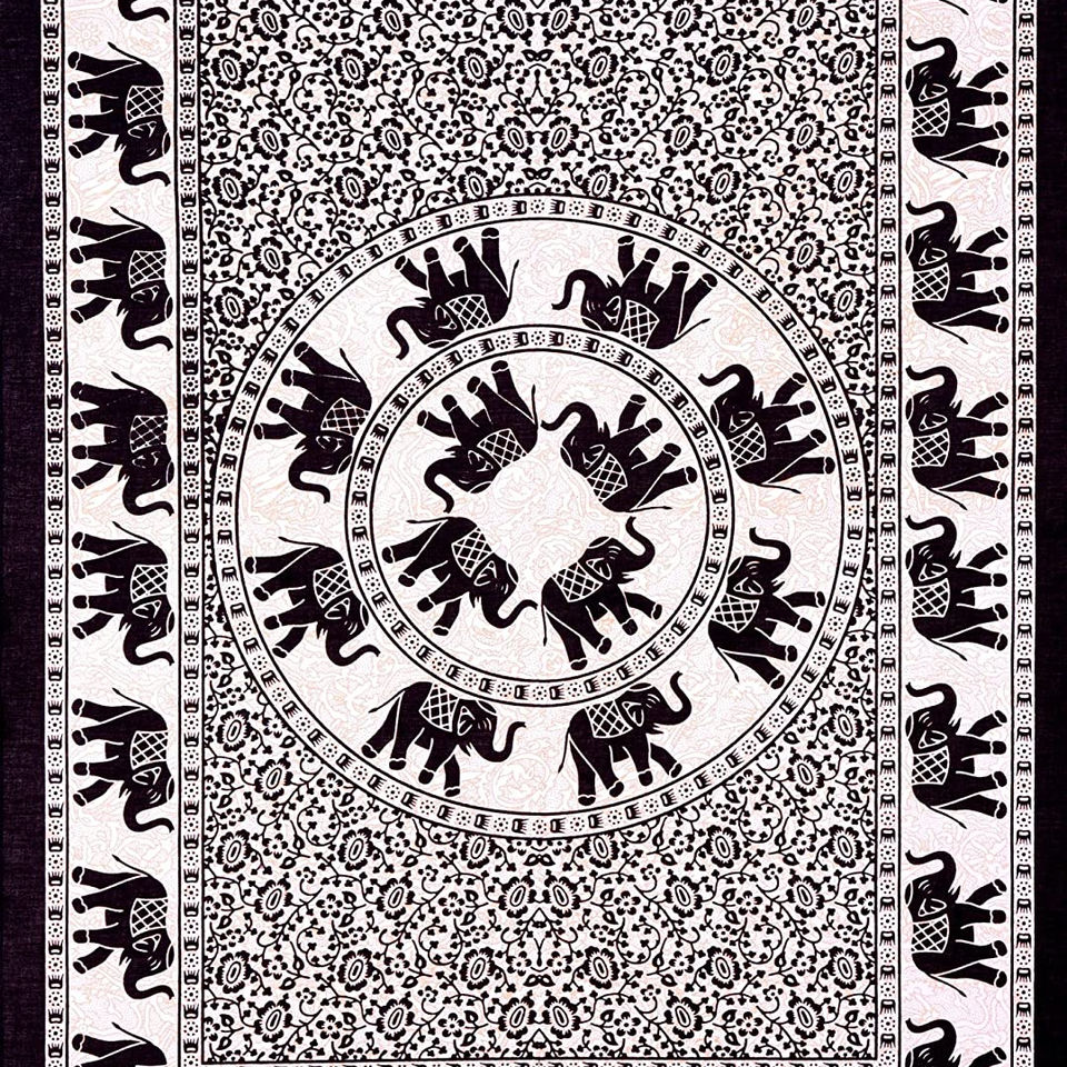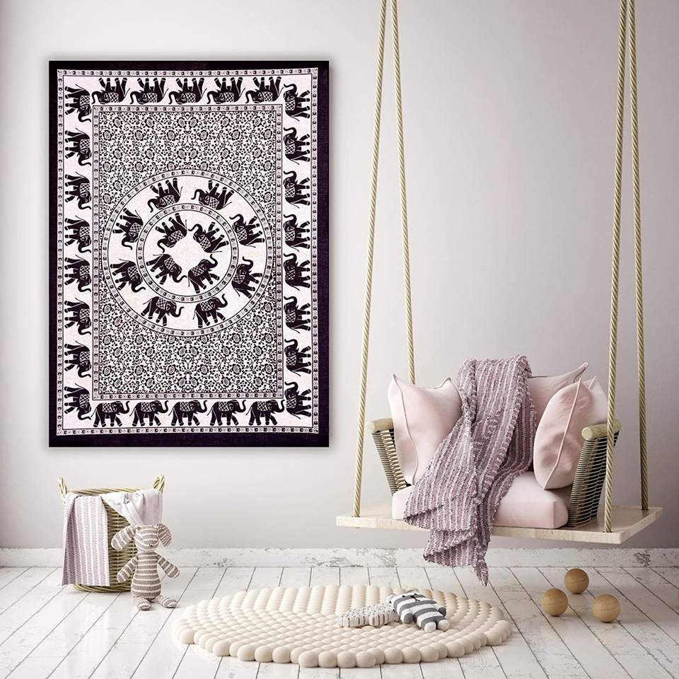 พรมทอแขวนผนังรูปช้างแมนดาลาสีขาว & ดำลายแมนดาลาทรงกลม