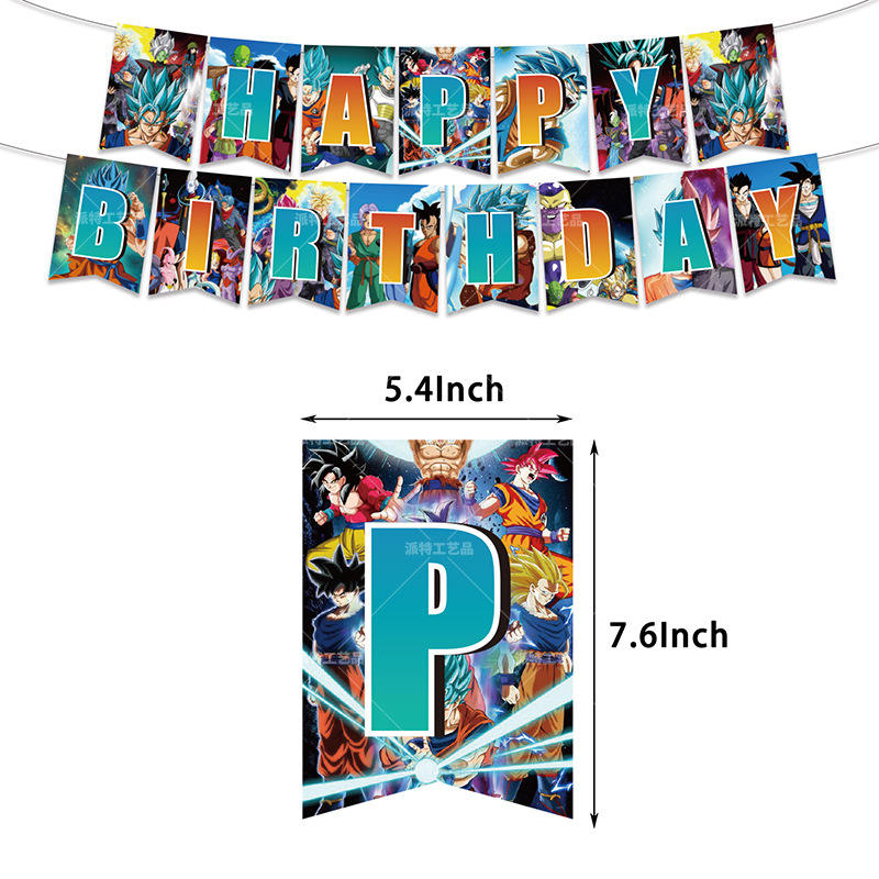Manga Style Celebration Decor Set Including Banner Flag Balloon Cake Ornament Children's Birthday Party Photography Background