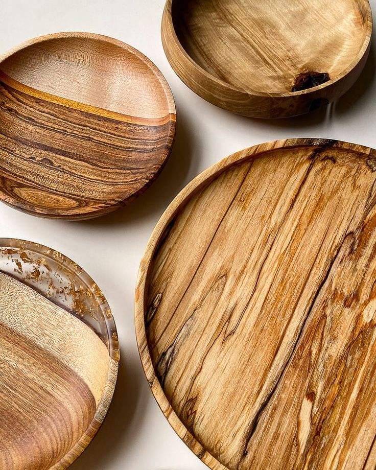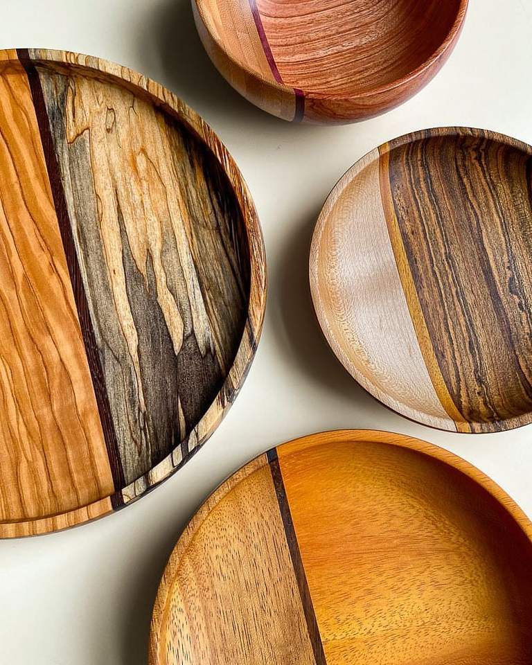 จานทรงกลมคลาสสิกทนทานเป็นมิตรต่อสิ่งแวดล้อมทำจากไม้มะม่วงและไม้อะคาเซีย