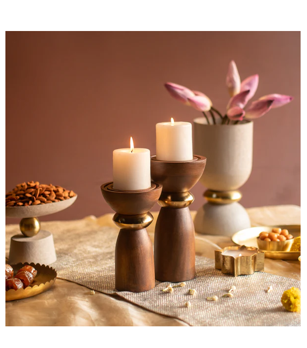 ที่วางเทียนไม้มะม่วงพร้อมถาดจัดระเบียบสำหรับโต๊ะอาหาร ขายดีที่สุด