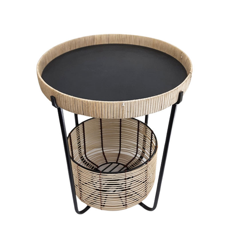 มะม่วงไม้และเหล็กรอบโต๊ะด้านข้างพับขาสีดำและสีธรรมชาติโต๊ะข้างเตียงและโต๊ะกาแฟสำหรับเฟอร์นิเจอร์บ้าน