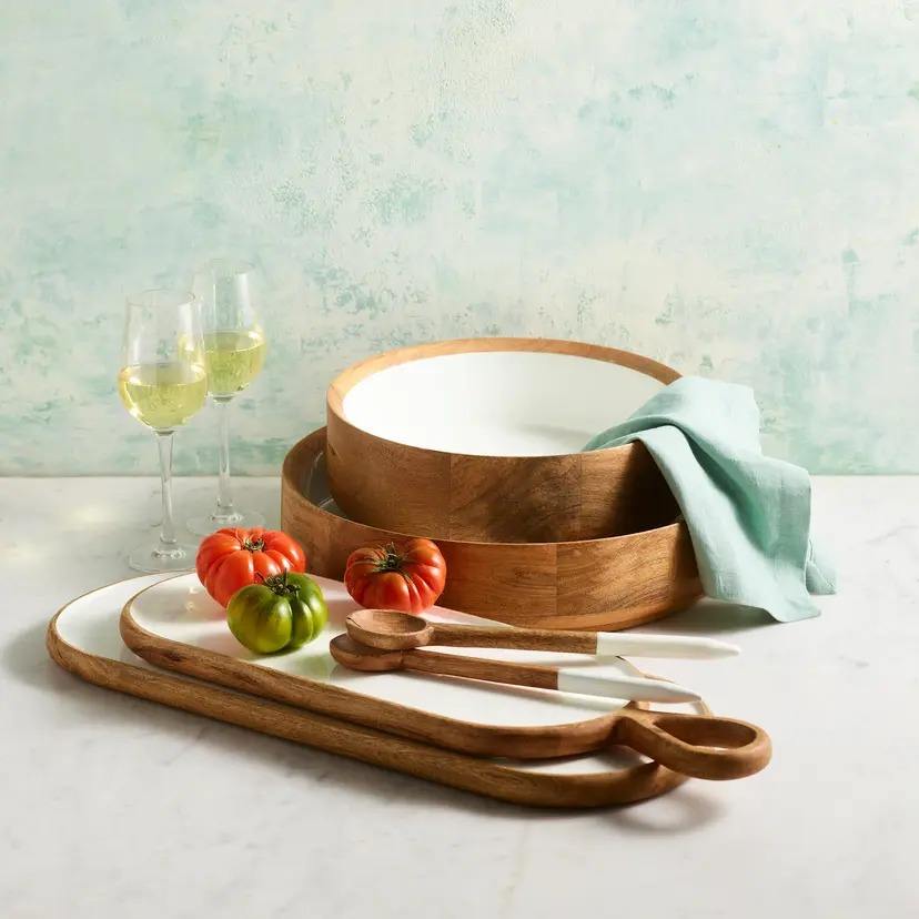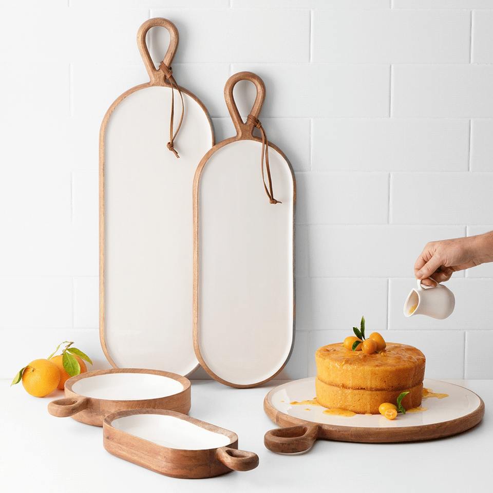 ถาดไม้มะม่วงรูปไข่80x25ซม. สีขาว