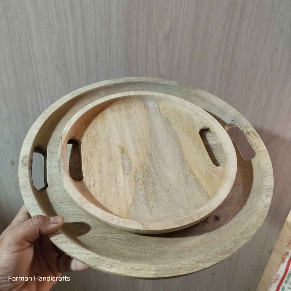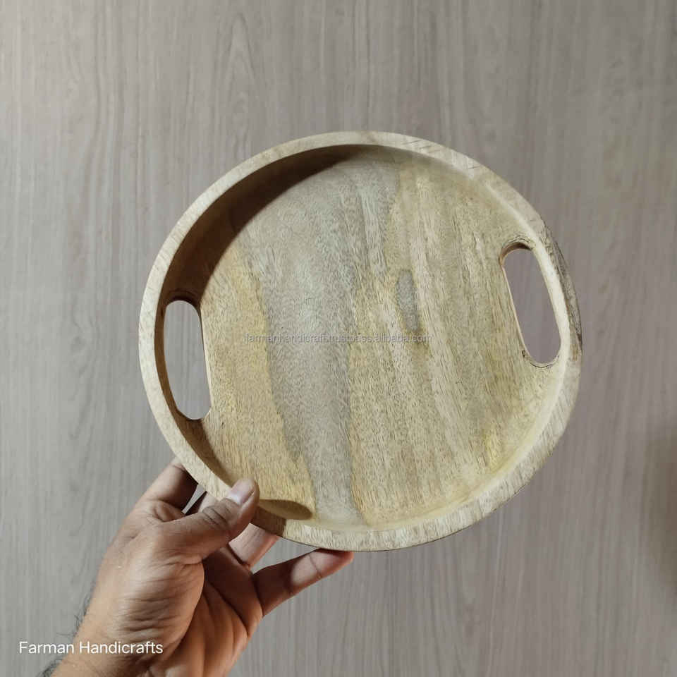 ถาดเสิร์ฟไม้มะม่วงทรงกลม ทำด้วยมือจากไม้ธรรมชาติ ราคาถูก