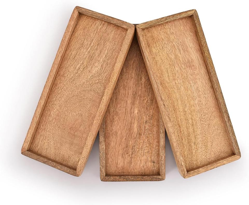 ชุดจานเสิร์ฟไม้มะม่วงขอบยก 3 ใบ สำหรับเสิร์ฟผลไม้ ของว่าง อาหารเรียกน้ำย่อย ซูชิ อาหารตกแต่ง