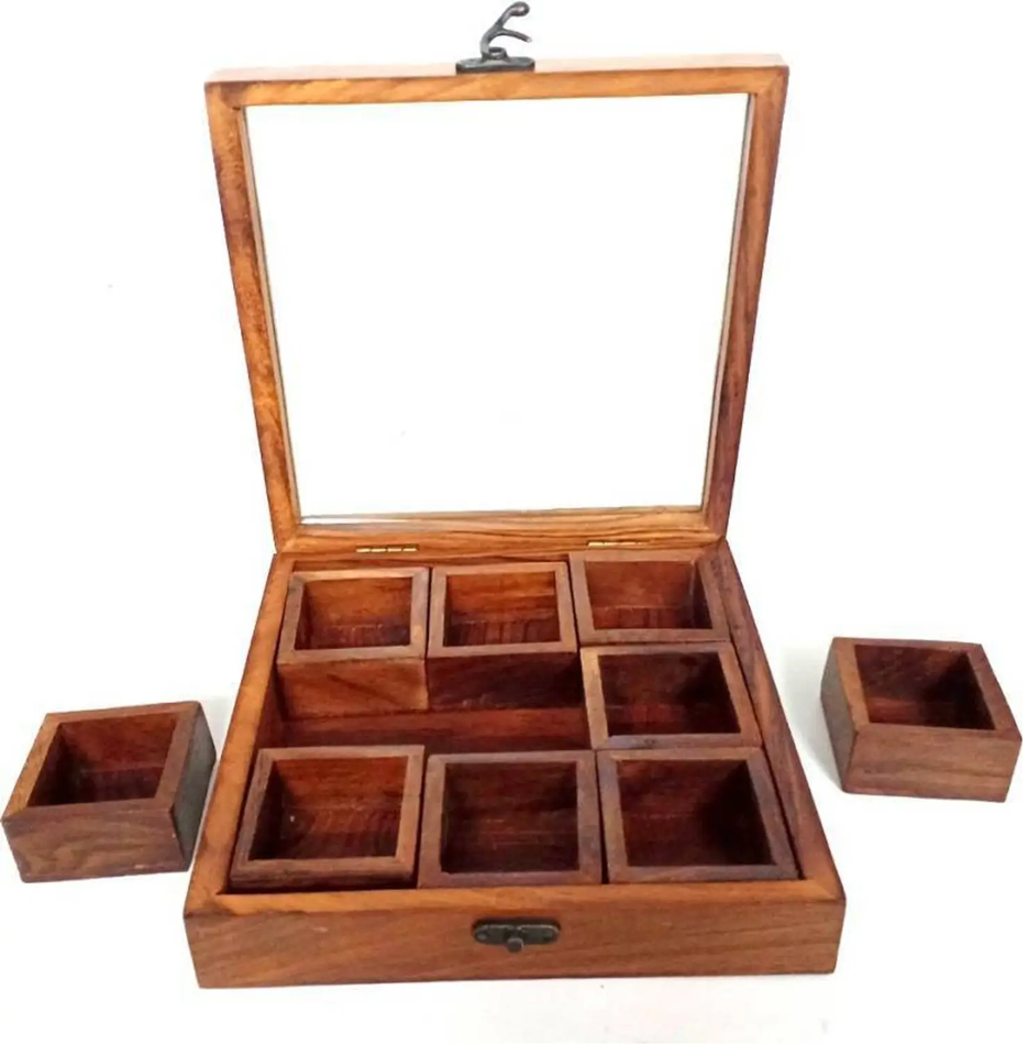 กล่องเครื่องเทศไม้มะม่วง พร้อมกล่องเก็บเครื่องเทศ 12 ช่อง และฝาอะคริลิค อุปกรณ์ครัวและร้านอาหาร ราคา กล่องเครื่องเทศไม้