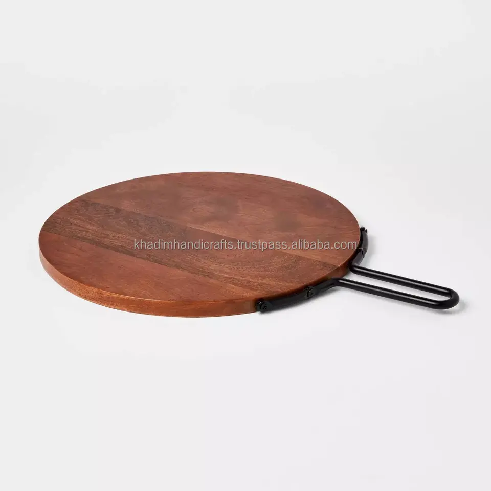 Eco Chef เขียงไม้มะม่วงขนาดใหญ่เขียงสีธรรมชาติพร้อมที่จับเหล็กเหมาะสำหรับผักและใช้ในครัวทุกวัน