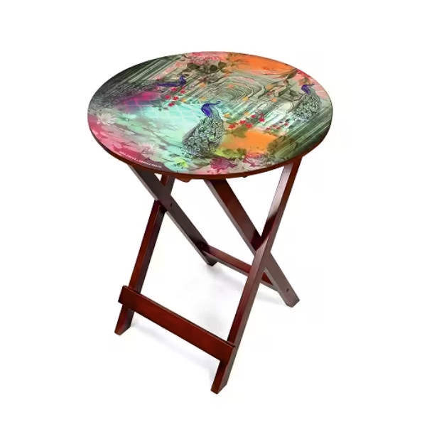 โต๊ะกลมไม้มะม่วงพร้อมพิมพ์ดิจิตอลด้านบนเคลือบมันวาว