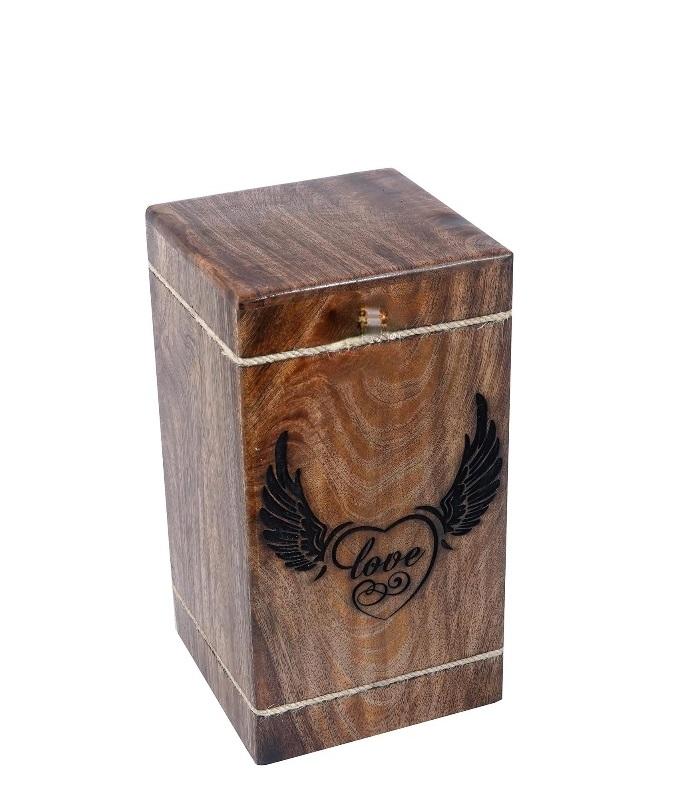 Mangowood ทังเผาไหม้สําหรับเถ้ามนุษย์ผู้ใหญ่ขนาดใหญ่ - โกศไม้ฝังศพColumbarium (Angel Wingหัวใจรัก 250 ลูกบาศก์นิ้วMW)