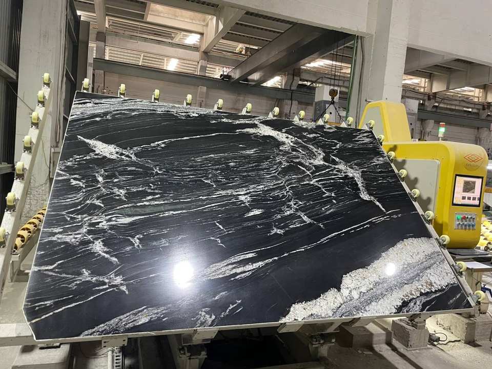 กระเบื้องปูพื้น quartzite หรูหราสีดำ Manhattan สำหรับหรูหราห้องนั่งเล่นในร่มวิลล่าอพาร์ทเม้น