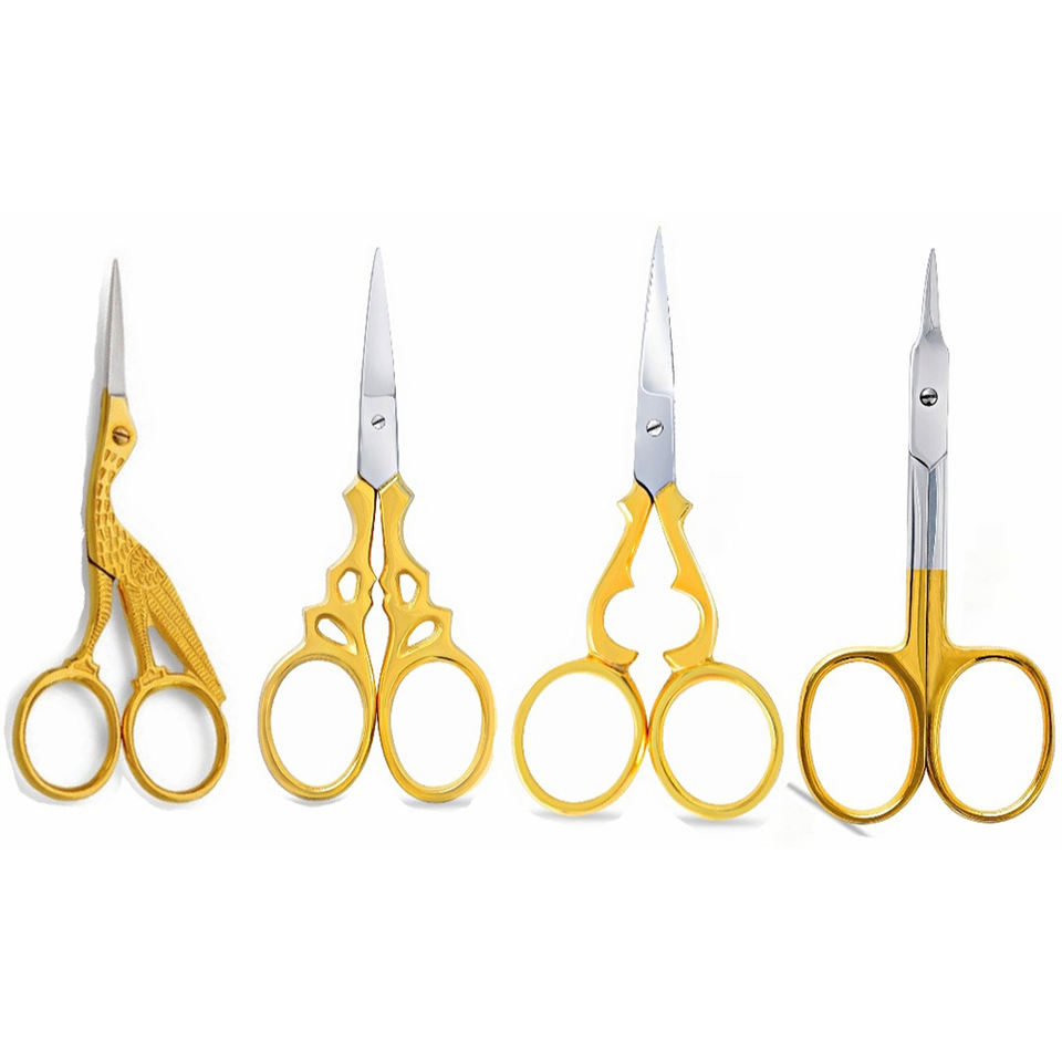 กรรไกรตัดเล็บมือเล็บเท้า คิ้ว จมูก ขนตา กรรไกรตัดหนังกำพร้าแบบมืออาชีพ สีทองอ่อน กรรไกรตัดเล็บโค้ง เครื่องมือแต่งหน้า