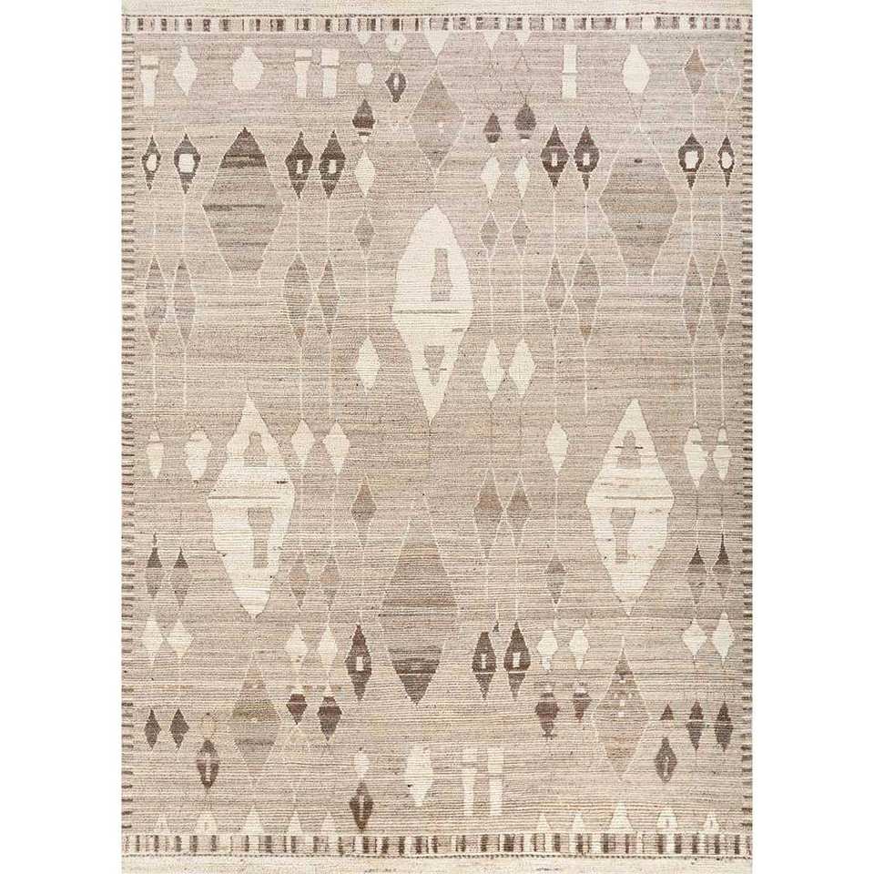พรมขนสัตว์ถักมือสีเบจและสีน้ำตาลลายเรขาคณิตสำหรับห้องนั่งเล่น ทางเข้าบ้าน และโถงทางเดิน รุ่น Car-Reb-1374