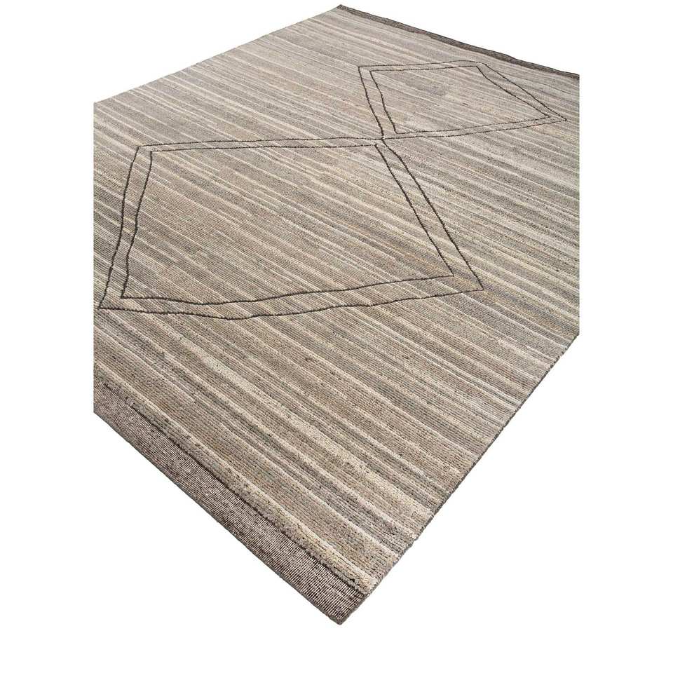 พรมขนสัตว์ถักมือสีเบจน้ำตาลลายเรขาคณิตแบบอัฟกัน สำหรับห้องนั่งเล่นวัยรุ่น ห้องโถง รุ่น Re-1171 รูปทรงสี่เหลี่ยมผืนผ้าสำหรับบ้าน