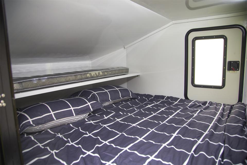 รถพ่วงสำหรับตั้งแคมป์แบบอิสระรถมอเตอร์ไซด์ไฟเบอร์กลาสขนาดเล็กพร้อมฟังก์ชั่นเคลื่อนย้ายได้และรองรับเต็นท์สำหรับตั้งแคมป์