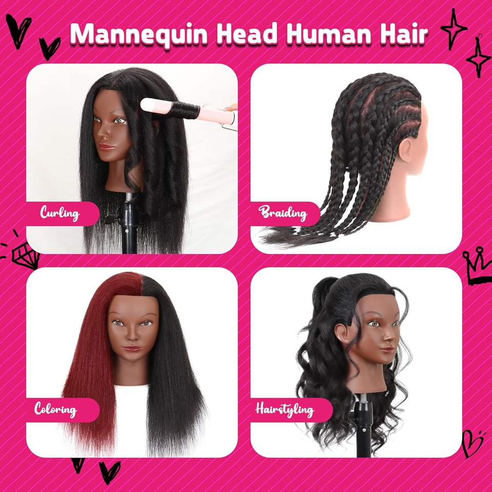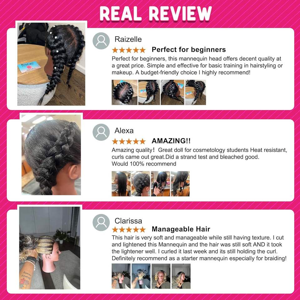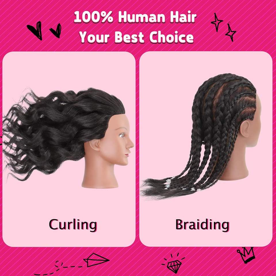 หัวหุ่นทำจากผมแท้บราซิล 100% ความยาว 16 นิ้ว สำหรับฝึกทำผมและถักเปีย ทำด้วยมือ