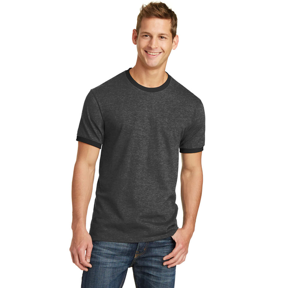 เสื้อยืดคอกลมแขนสั้นสำหรับผู้ชาย-สีเฮเทอร์เข้มสีเทาเข้ม