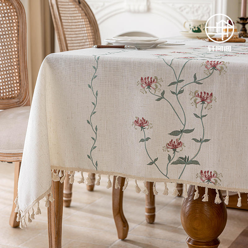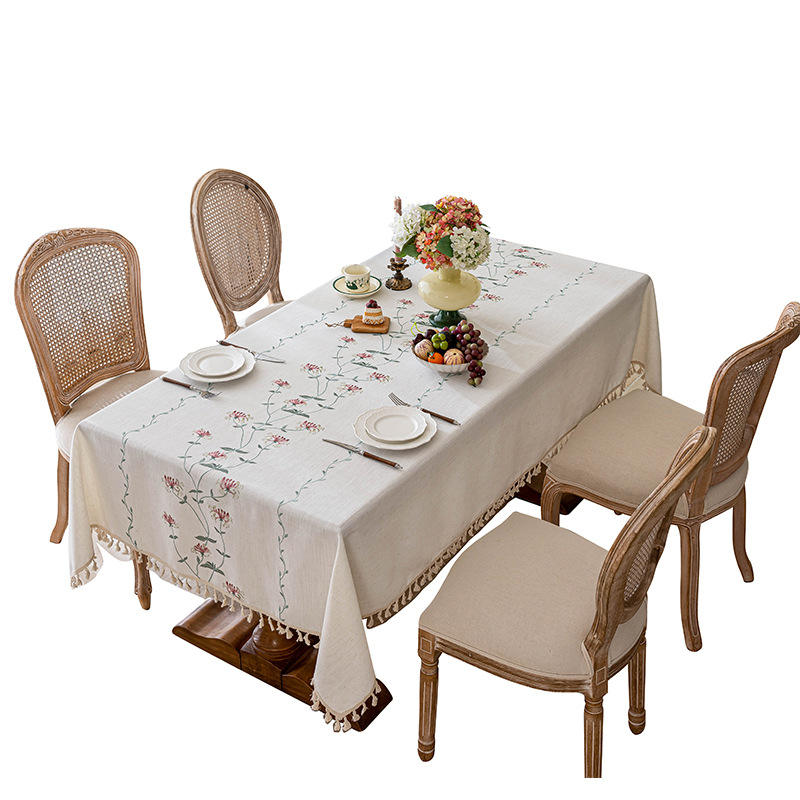 ผ้าปูโต๊ะปักลายแมนเซิง ฟางฮวา รูปทรงสี่เหลี่ยมผืนผ้า ทำจากโพลีเอสเตอร์ ขอบประดับพู่ห้อย สำหรับตกแต่งโต๊ะอาหารที่บ้าน ลายดอกไม้