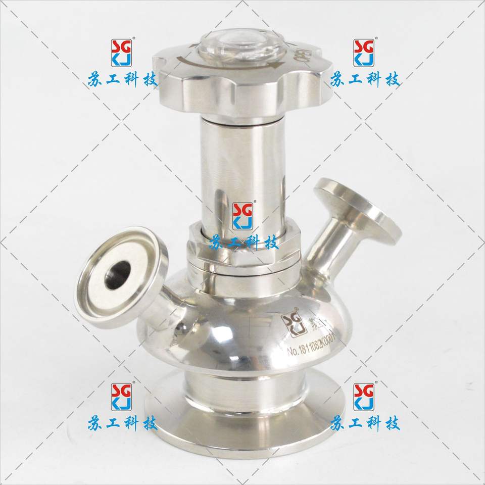 วาล์วเก็บตัวอย่างแบบปลอดเชื้อชนิดใช้มือหมุน พร้อมโครงสร้างไดอะแฟรมและหน้าจอแสดงตำแหน่ง สำหรับน้ำ ผลิตโดยบริษัทวาล์วเก็บตัวอย่างแบบปลอดเชื้อ