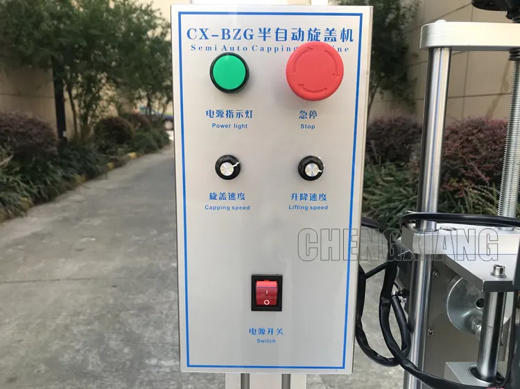 เครื่องปิดฝาขวดกึ่งอัตโนมัติแบบแมนนวล พร้อมแกนปั๊ม สำหรับขวดโลหะและพลาสติก รุ่น CX-BZG