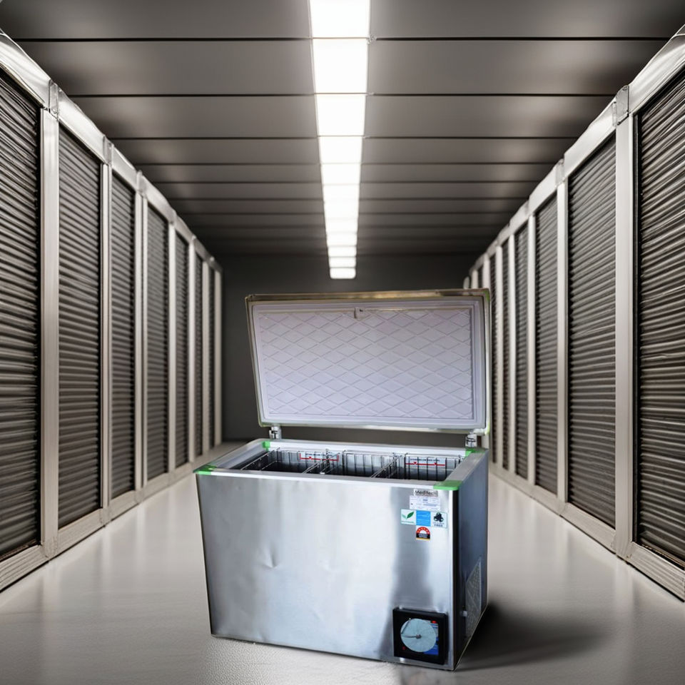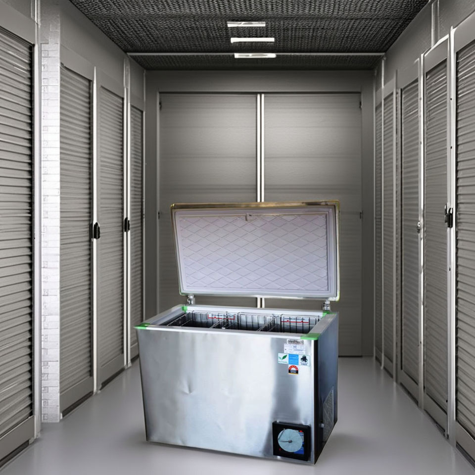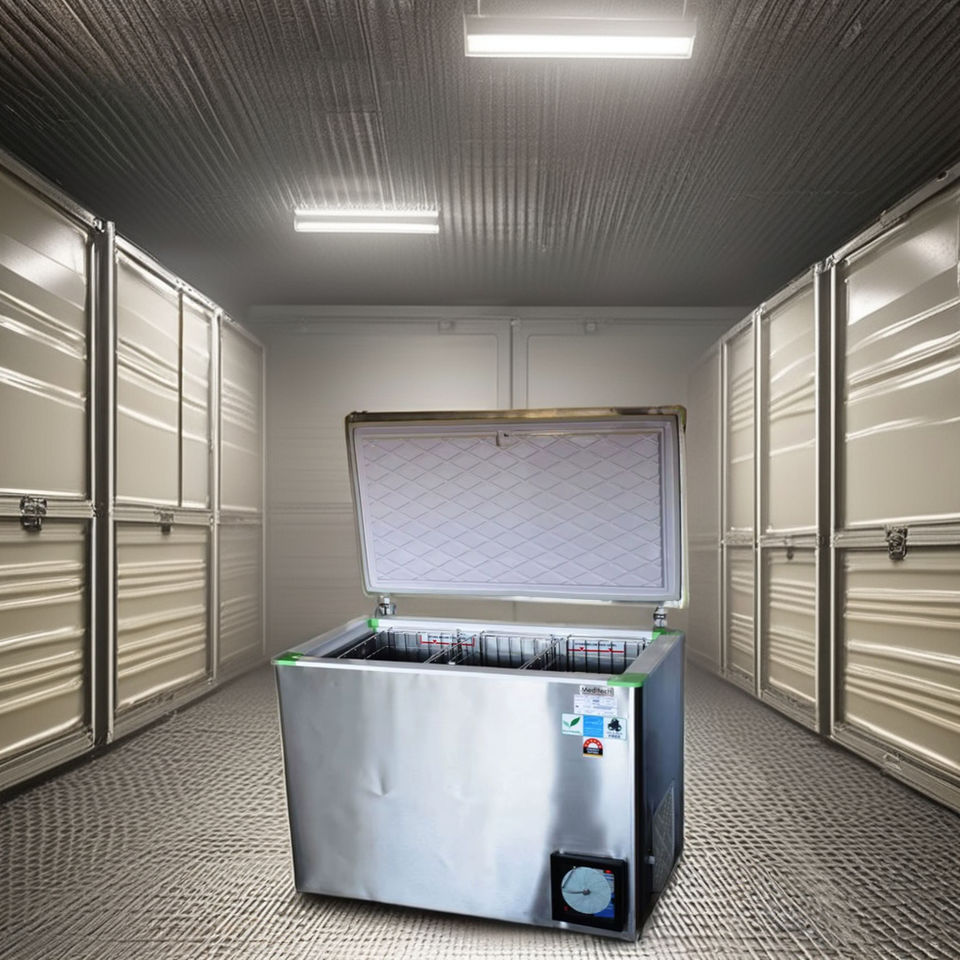ตู้แช่แข็งพลังงานแสงอาทิตย์แบบละลายน้ำแข็งด้วยมือ พร้อมปั๊มและภาชนะเก็บความเย็น