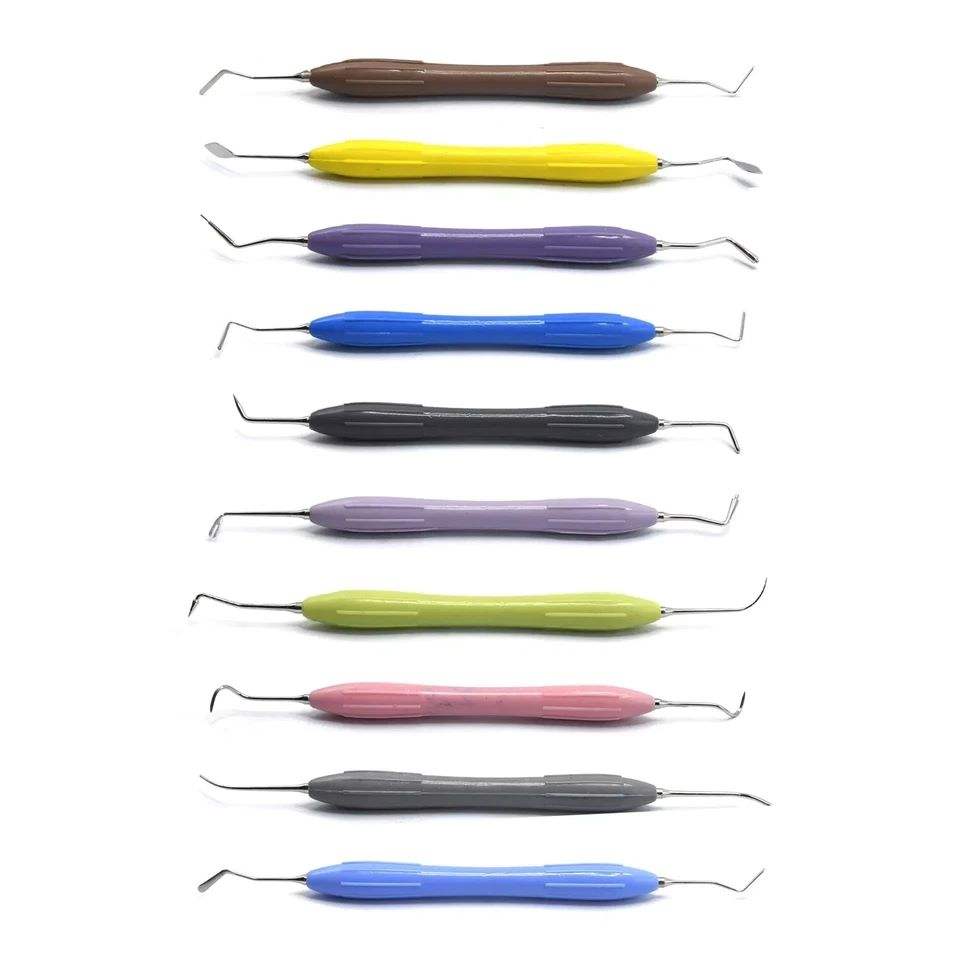 ชุดเครื่องมืออุดฟันและบูรณะฟันแบบแมนนวล 10 ชิ้น พร้อมด้ามจับสแตนเลสและซิลิโคน