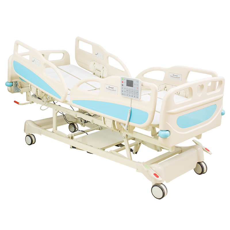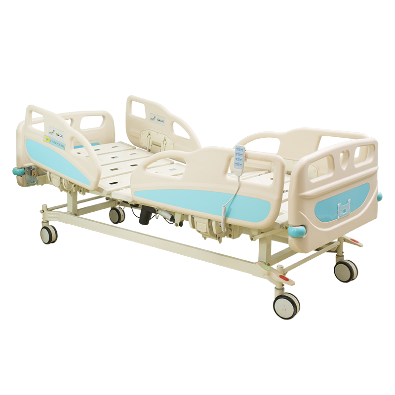 เตียงดูแลทางการแพทย์แบบแมนนวลห้าฟังก์ชั่นเตียงพยาบาลที่บ้านผู้ป่วยมือหมุนปรับความสูงได้1ชิ้นเตียงโรงพยาบาลบรรจุกล่อง