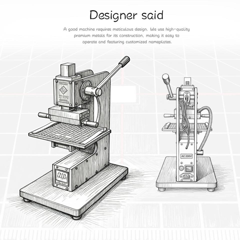เครื่องปั๊มร้อนแบบดิจิตอลชนิดใช้มือ รุ่น 90XTS สำหรับงานหนัง พร้อมตัวอักษรทองเหลือง ใช้ระบบไฟฟ้า